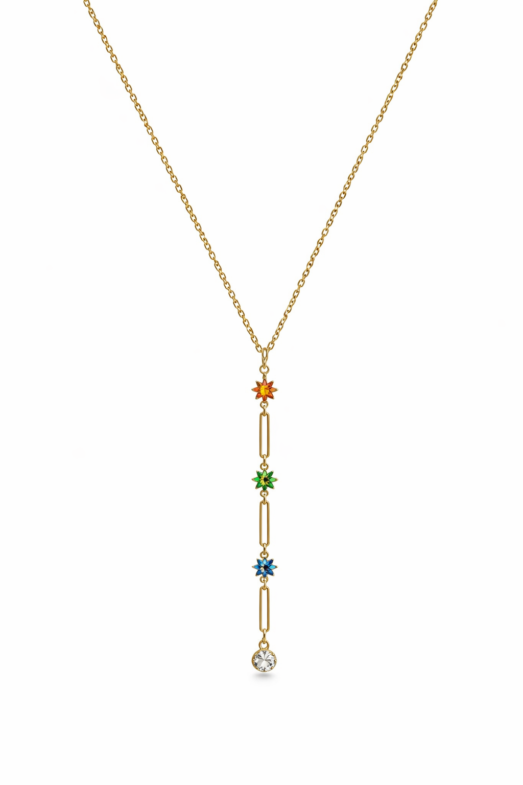 Gold Zincir Renkli Çiçekli Çelik Kolye