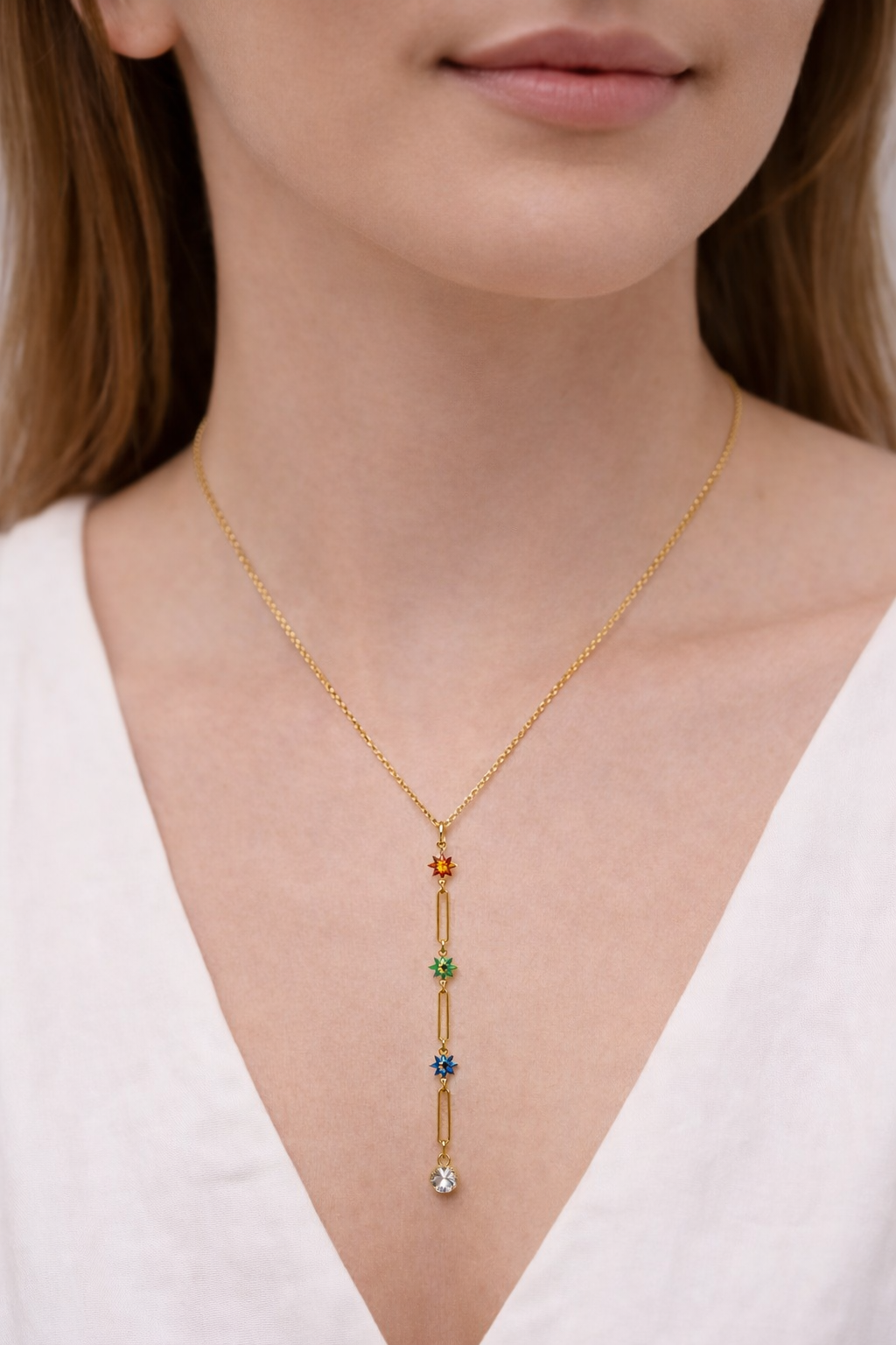 Renkli Çiçek Detaylı Gold 316L Çelik Uzun Kolye, minimal ama dikkat çeken tasarımıyla günlük şıklığı tamamlar. Gold ton zincir formu, kolye boyunca yer alan renkli çiçek detaylarıyla hareket kazanır. 316L paslanmaz çelik yapısı sayesinde doğru kullanımda kararma yapmaya daha dirençlidir ve uzun süre parlak görünümünü korumaya yardımcı olur.